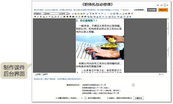网班平台,拥有自主创新的专利“网页流”课件技术,让老师们“零培训”即会制作互动课件。如下面的课件制作界面,教师只需要编辑内容区,然后选择互动区,系统就会自动生成互动课件 -- 会用Word就会做在线互动微课程: